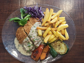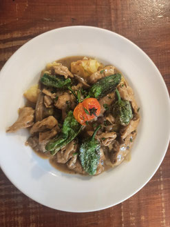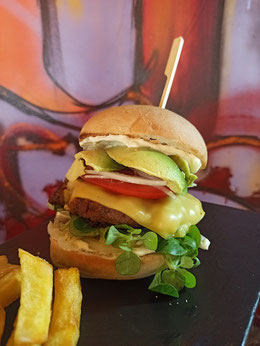 1. ratatouille with sliced potato. 2. seitan tikka masala 3. burger with fries. 4. spaghutti with bolognese. 5. dish of the day.